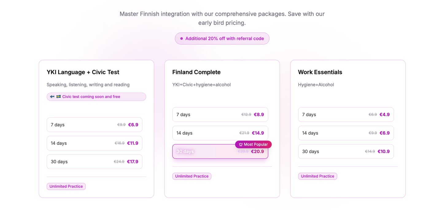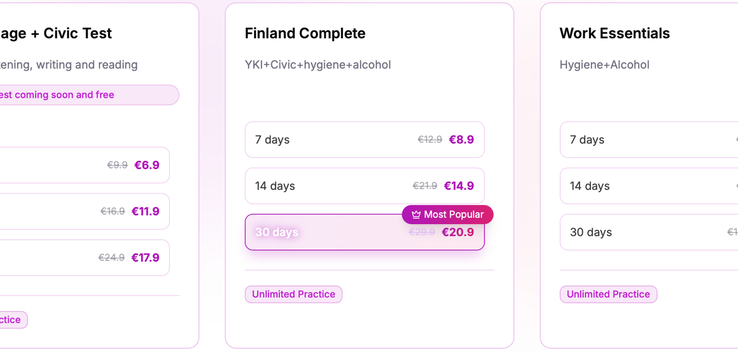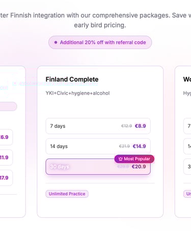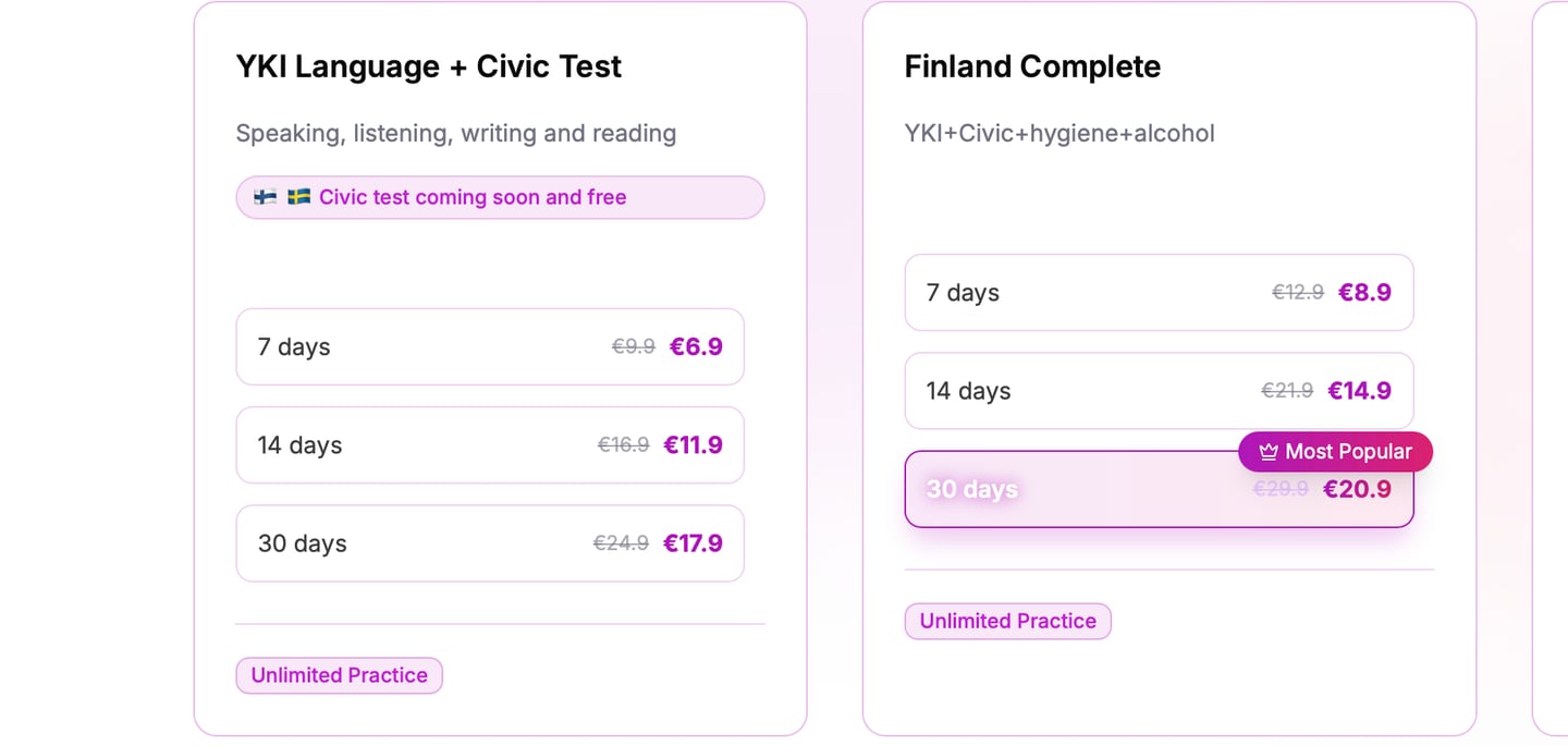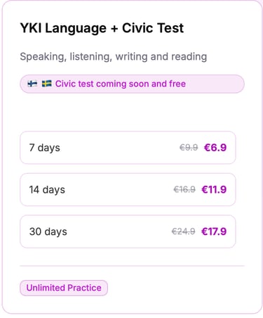 Master Finnish and Swedish proficiency with comprehensive YKI exam preparation. Practice all four core skills—listening, reading, speaking, and writing—while building essential civic knowledge about Finnish society, laws, and culture for your citizenship journey.