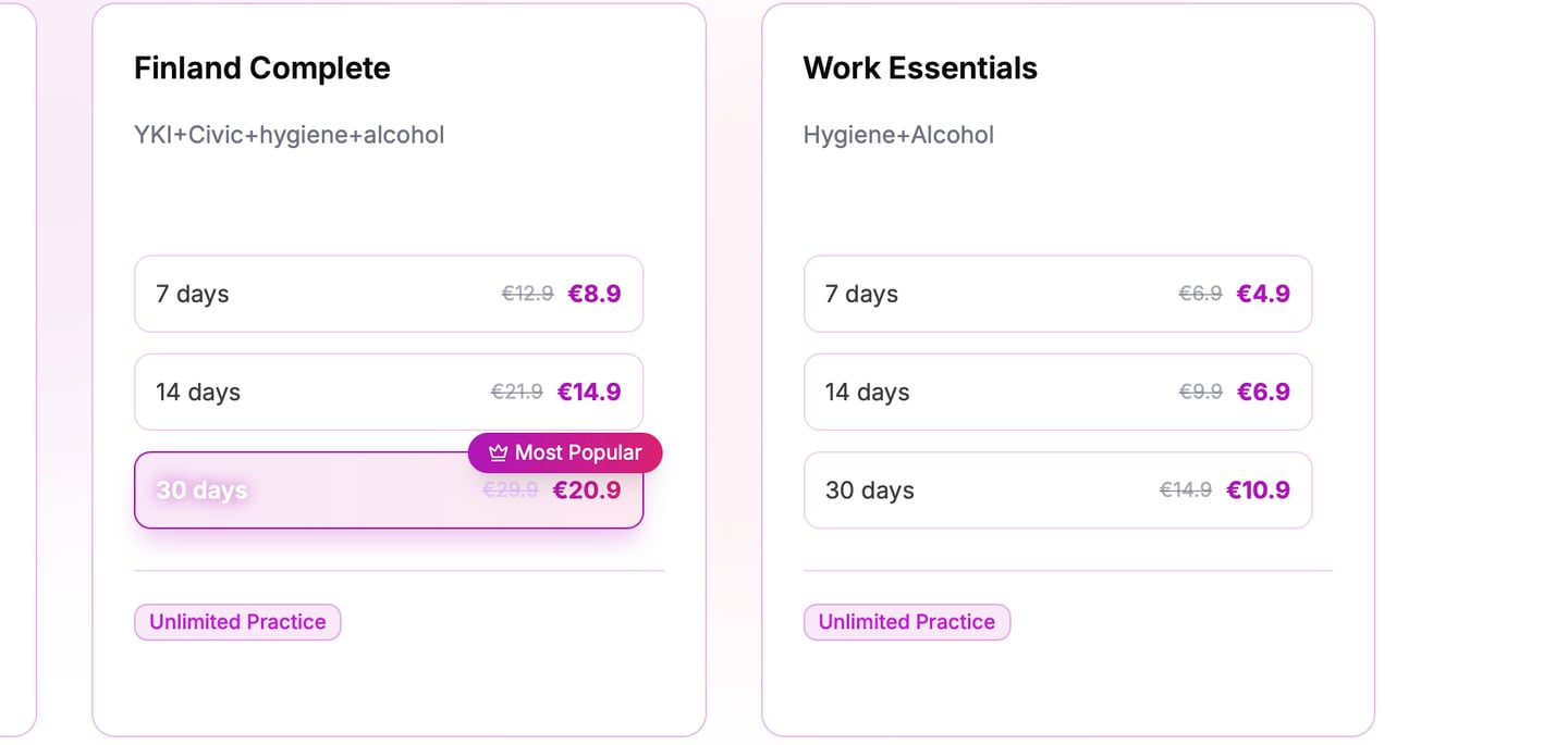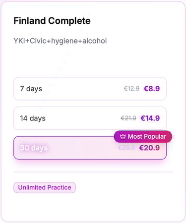 Kickstart your hospitality and bar tendering career—get ready to pass Finland’s Alcohol Pass (Anniskelupassi) exam with smart, targeted practice.